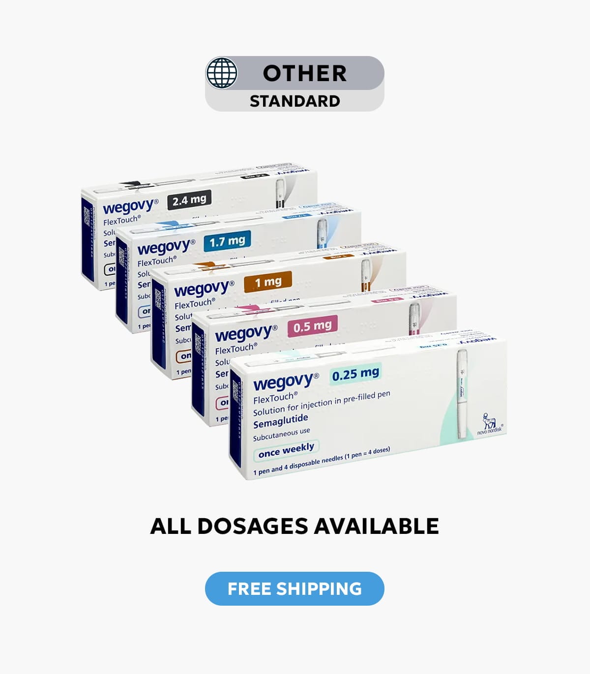 Each package contains four weekly doses, offering a convenient one-month supply for ongoing treatment. When combined with a healthy diet, exercise, and medical guidance, Wegovy can help individuals improve metabolic health and achieve long-term weight management goals.