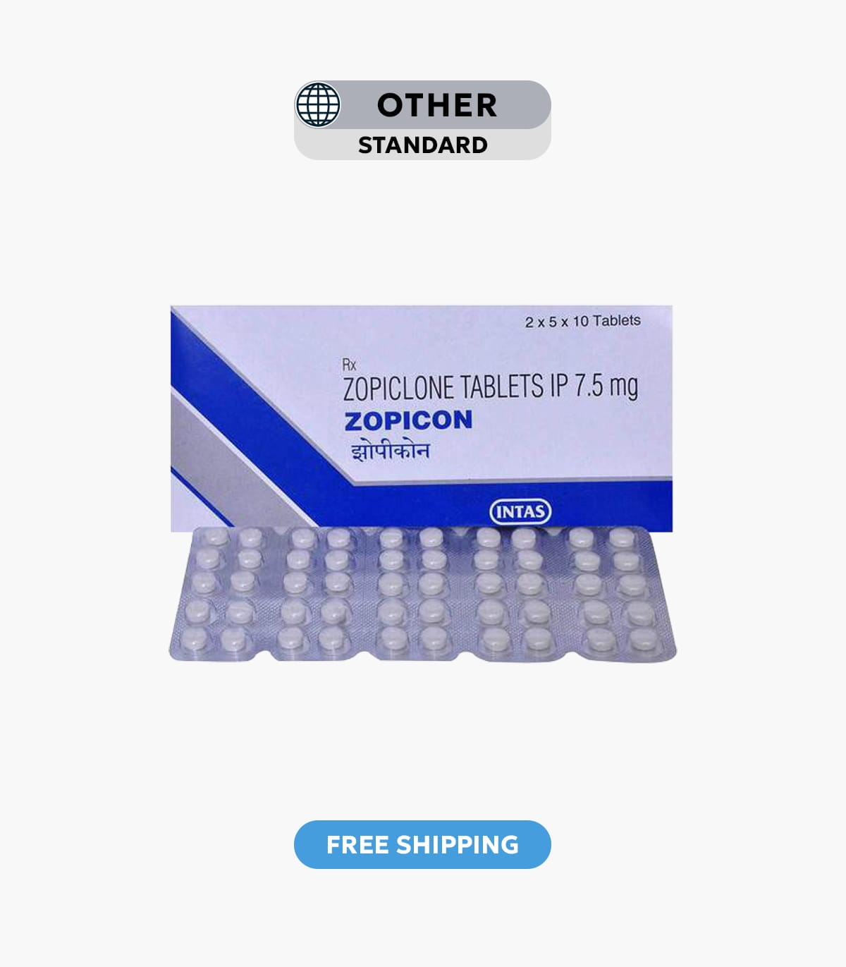 Zopicon 7.5 mg (Zopiclone Tablets IP) is a prescription oral medication containing Zopiclone, a short-acting hypnotic agent designed to help individuals fall asleep faster and maintain uninterrupted sleep. This tablet is commonly prescribed for insomnia and other sleep disturbances that affect daily functioning and overall well-being.